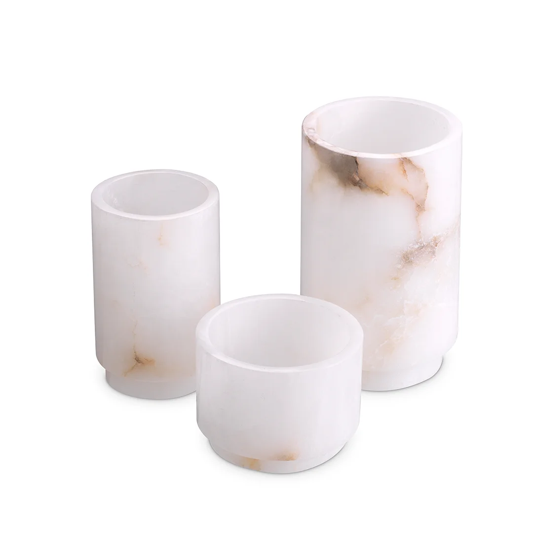 Η φυσική ομορφιά του λίθου αποκαλύπτεται μέσα από μοναδικές αποχρώσεις και εκλεπτυσμένα φυσικά νερά, που καθιστούν κάθε κομμάτι πραγματικά ξεχωριστό. Όταν φωτίζονται, τα κηροπήγια διαχέουν μια απαλή, θερμή λάμψη που δημιουργεί μια ατμόσφαιρα διακριτικής πολυτέλειας και ηρεμίας. Τοποθετήστε τα μεμονωμένα για μια αίσθηση οικειότητας ή συνδυάστε τα για μια εντυπωσιακή διακοσμητική σύνθεση.