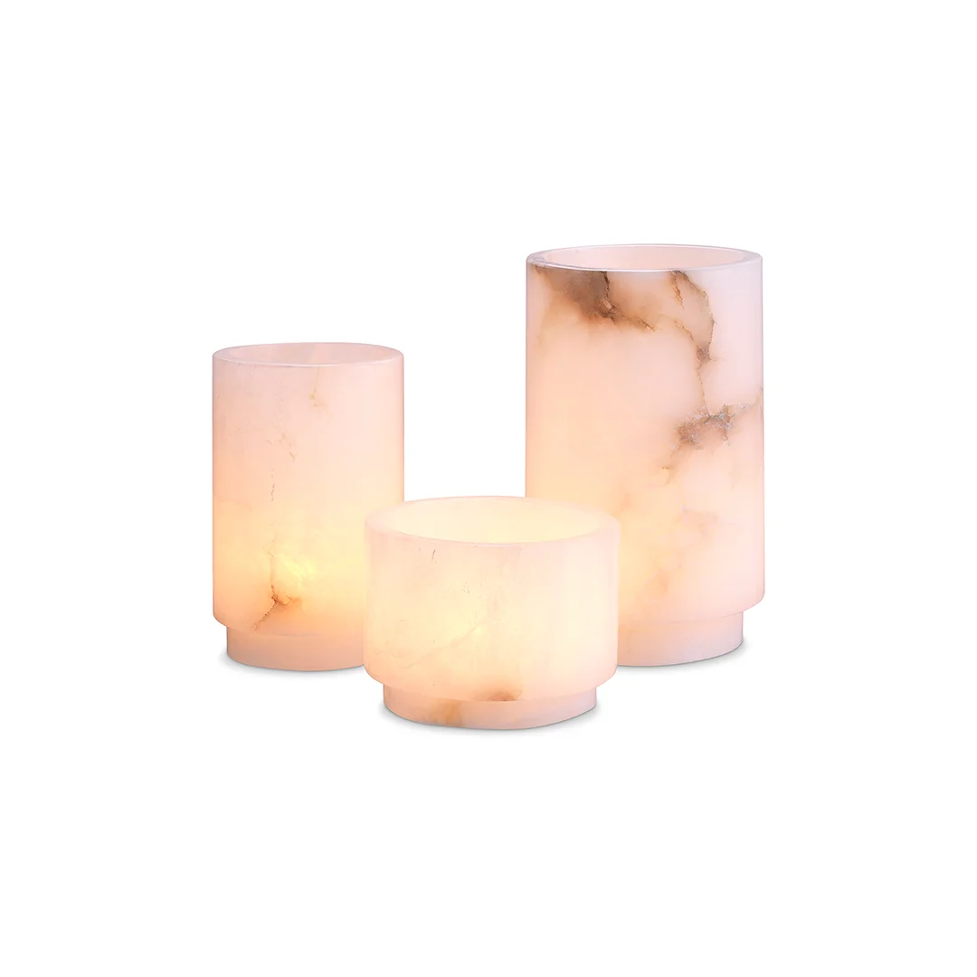 Το σετ κηροπηγίων ρεσώ Leonidas αποτελεί μια εκλεπτυσμένη σύνθεση τριών φωτιστικών στοιχείων, φιλοτεχνημένων από πολυτελές αλάβαστρο.