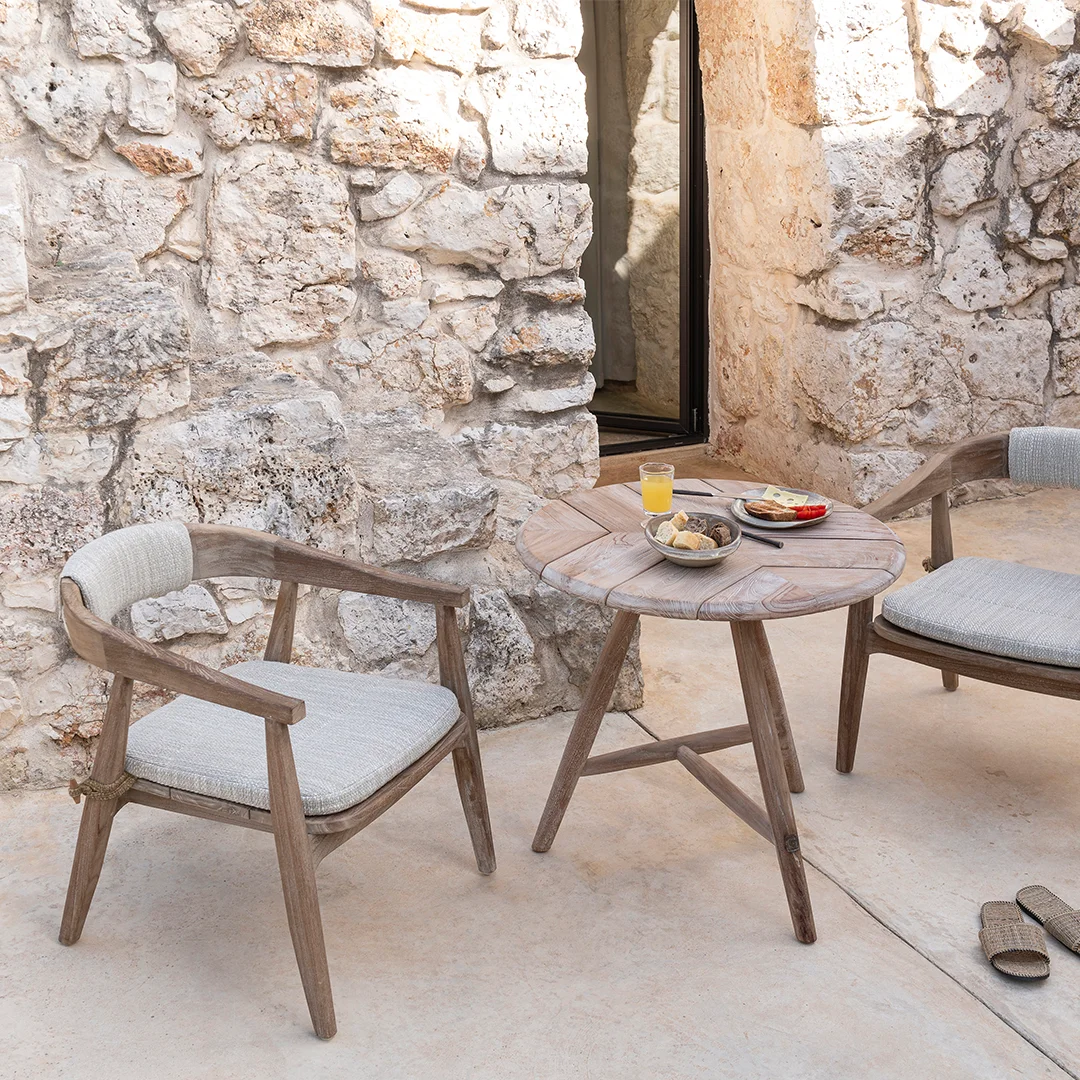 Η πολυθρόνα Faye Easy της Gommaire από μασίφ teak εκφράζει την αυθεντική πολυτέλεια στους εξωτερικούς χώρους και στον τομέα της φιλοξενίας. Με καθαρές, γλυπτικές γραμμές και χαμηλό, αναπαυτικό προφίλ, προσφέρει εξαιρετική άνεση και διαχρονικό στυλ. Κατασκευασμένη από υψηλής ποιότητας teak σε απόχρωση Natural Grey, είναι ανθεκτική στις καιρικές συνθήκες, καθιστώντας την ιδανική για ξενοδοχεία, θέρετρα, βίλες και lounge χώρους δίπλα σε πισίνα. Ο οργανικός της σχεδιασμός ενσωματώνεται φυσικά σε σύγχρονους ή rustic εξωτερικούς χώρους. Η Fay Easy Chair της Gommaire αποτελεί επένδυση σε ποιότητα, άνεση και αισθητική εξωτερικού χώρου.