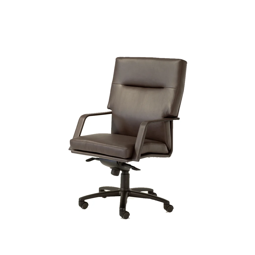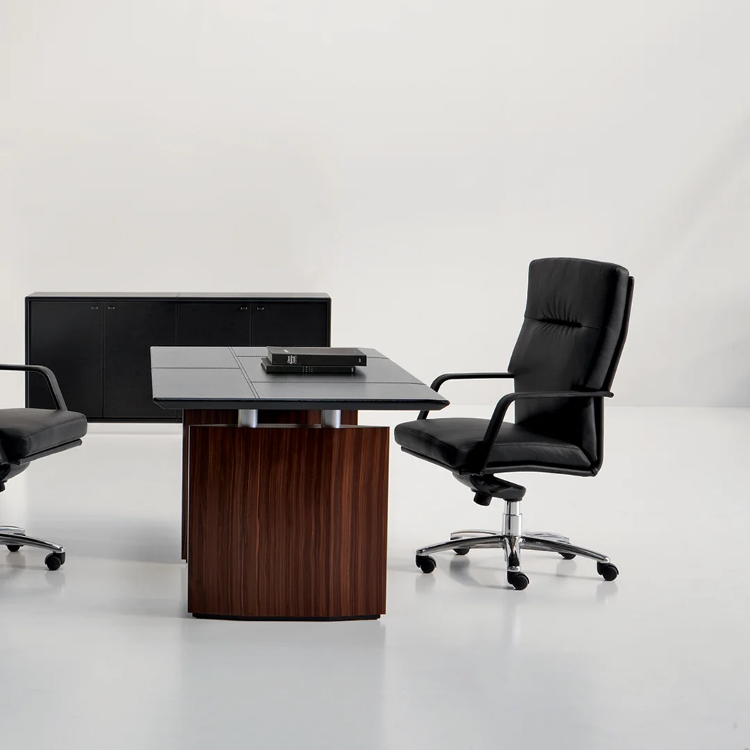Η καρέκλα γραφείου London 433 συνδυάζει άνεση και κομψότητα. Το κέλυφος, τα μαξιλάρια και τα μπράτσα είναι επενδεδυμένα με μαλακό δέρμα, ενώ η σταθερή βάση από ατσάλι είναι επίσης επενδεδυμένη με δέρμα. Διαθέτει βάση πέντε ακτίνων από γυαλιστερό ή μαύρο λακαριστό αλουμίνιο, με δυνατότητα περιστροφής και ανάκλισης.