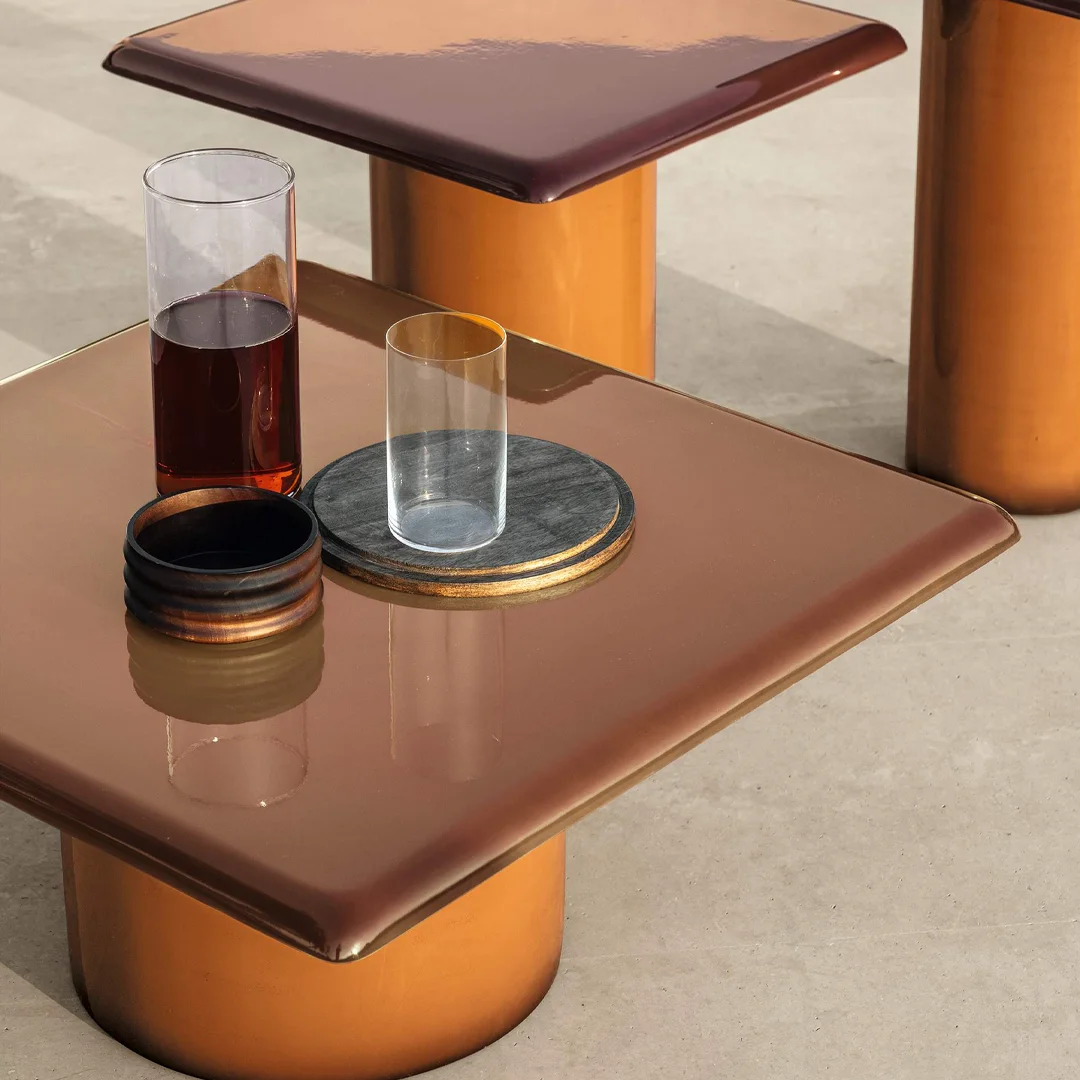 Όπως και το side table, το Snap Coffee Table του Francesco Favaretto παρουσιάζει γυαλιστερή, ανθεκτική κατασκευή από fiberglass σε τετράγωνο χαμηλό σχήμα. Μινιμαλιστικό, κομψό και κατάλληλο για εσωτερικούς και εξωτερικούς χώρους.