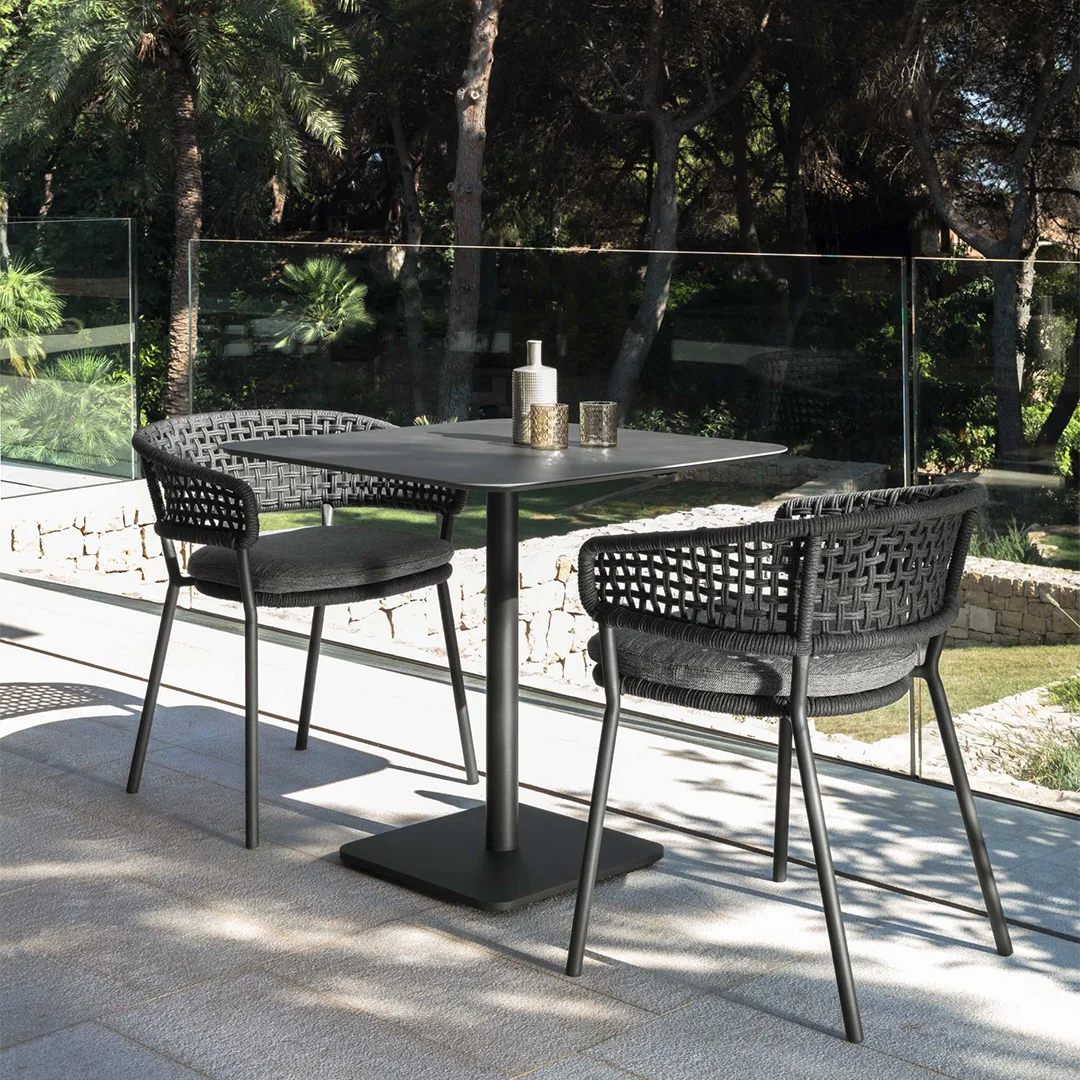 The Moon dining armchair offers a spacious and welcoming seat, featuring a light rope weave that forms the backrest and seat.