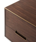 Cherry Crown Veneered, Almond Finish, Two Drawers with Inset Handle, Brushed Pyrite Molded Top & Handle Surround.